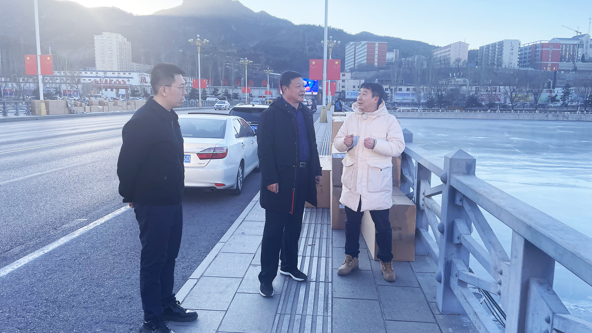 在府前路大橋施工現(xiàn)場(chǎng),徐俊儒總經(jīng)理聽(tīng)取了施工單位關(guān)于亮化工程的施工進(jìn)展及疫情防控情況介紹,了解了設(shè)備安裝和材料采購(gòu)運(yùn)輸情況,查看了工程施工進(jìn)展及相關(guān)安全防護(hù)措施。